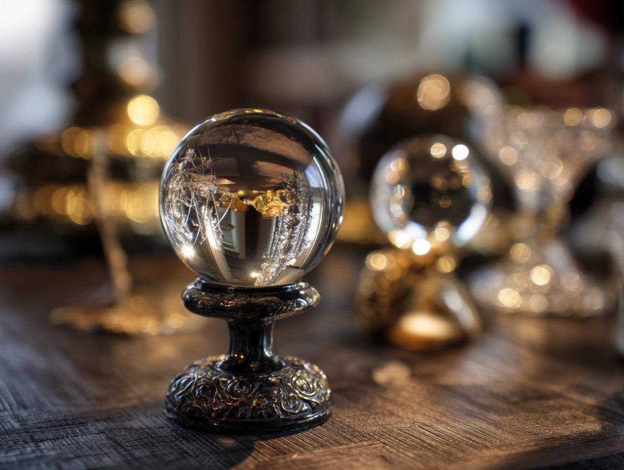 Gaze into the enchanting crystal spheres — handcrafted pieces that capture the calm and energy of the cosmos. Each sphere reflects your deepest longings and guides you on a mystical journey of light and clarity