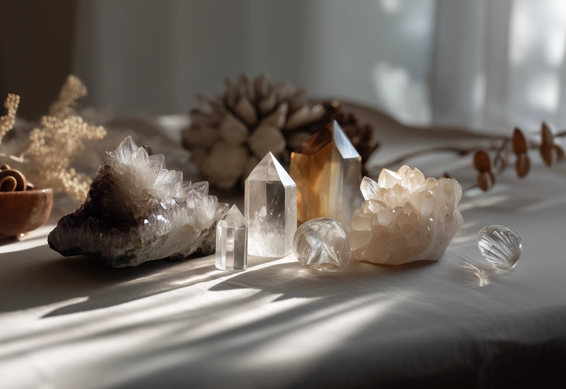 Natural crystals channel the earth’s quiet energy — gently cleansing your aura, restoring emotional balance, and inviting a calm clarity that lights your inner world.